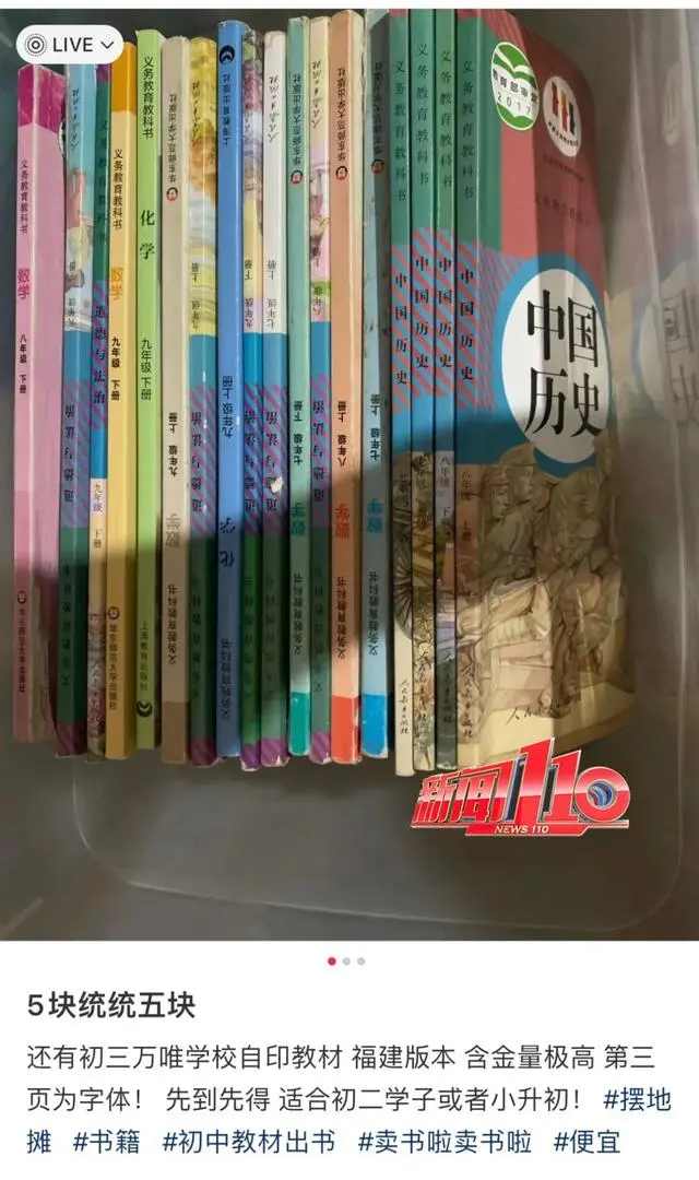 此外,在多个平台,售卖个人闲置书本的也不少,科目齐全,价格通常在1元/本—10元/本不等。有网友表示,这种方式不错,可以帮助有需要的同学节省预习买课本的开支。