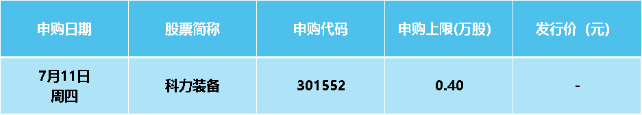 本周(7月8日至7月14日)A股创业板有1只新股申购。