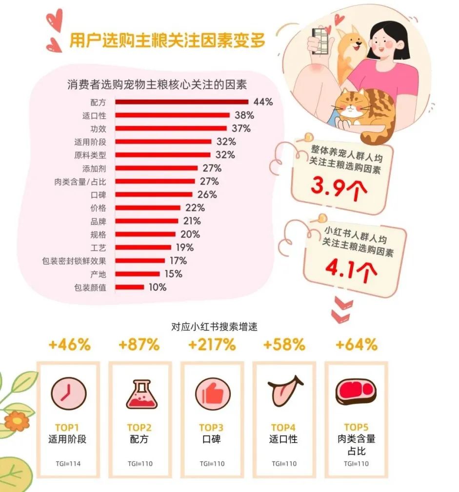 根据小红书商业部联合第一财经商业数据中心发布的《宠爱有力量:小红书2024宠物行业洞察报告》来看,越来越多宠物围观用户正式加入铲屎官行列,小红书关于分享宠物日常、产品测评的帖子也大有流量,“什么狗狗最好养”“幼猫猫粮推荐”“小猫咪一直发出咕噜咕噜”等新手问题在小红书的搜索量增速都同比增长超过330%。