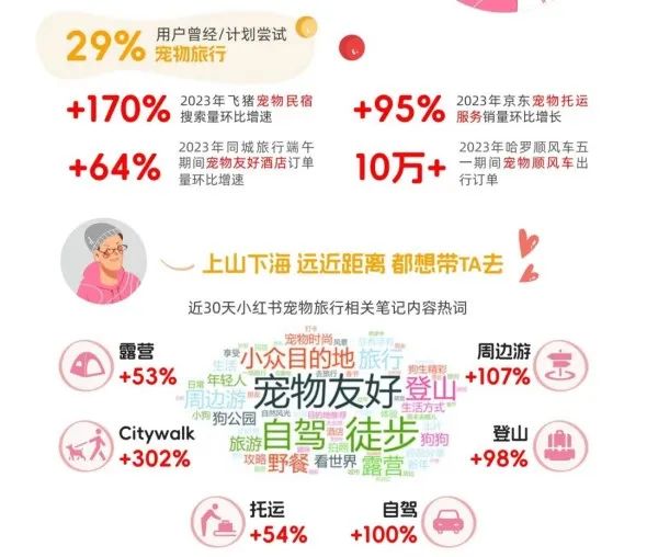 与此同时, 越来越多一线、新一线都市年轻人开始规划宠物旅行,着宠物出门看世界,宠物民俗、宠物托运、宠物友好酒店、宠物顺风车的热度不断攀升。