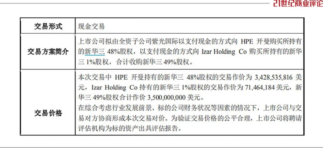 交易所涉三方,紫光股份、新华三以及HPE,皆是巨头。