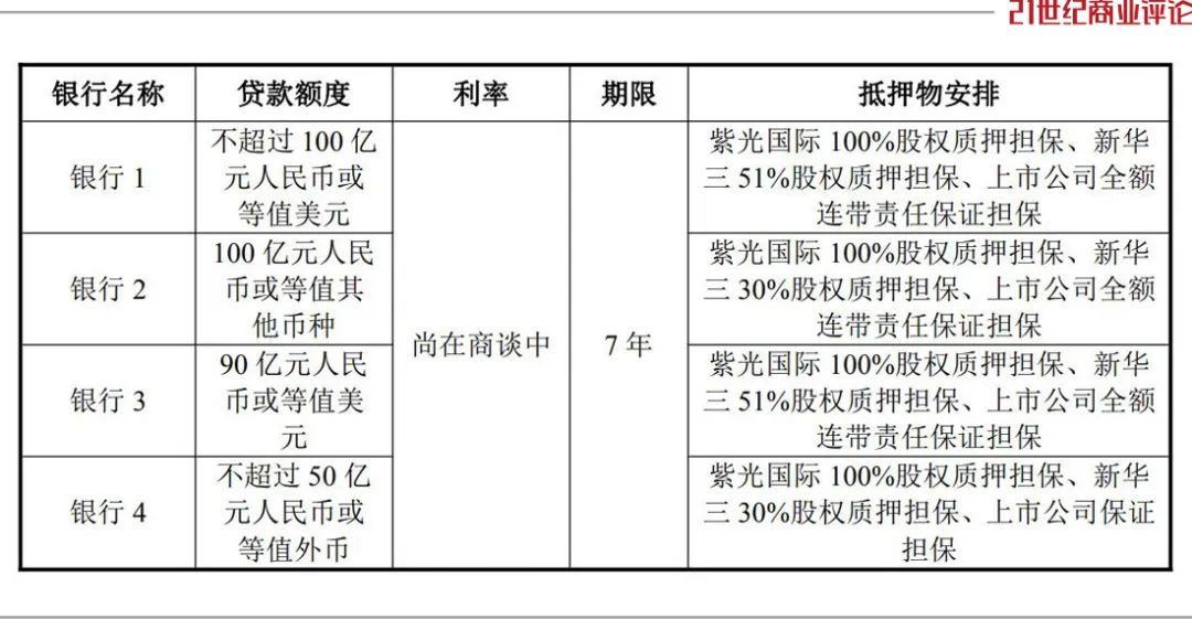 紫光股份表示,公司拟向银行申请不超过100亿元人民币贷款,本次交易涉及的金额大,若未能筹措到足额资金,可能导致交易失败。