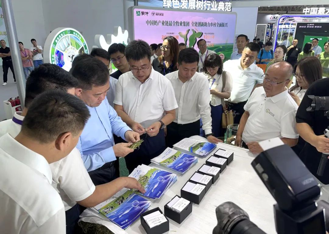 高飞随后重点参观了两家蒙牛展区内饲料公司的展台,中粮旗下饲料公司五谷丰登及现代饲料。
