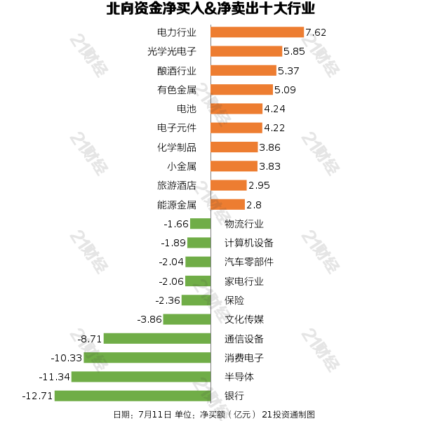 据21投资通智能监测,7月11日,北向资金净买入30.46亿元,其中沪股通净买入12.83亿元,深股通净买入17.63亿元。