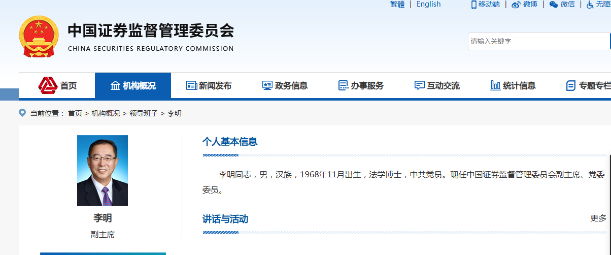 近日,国务院决定,任命李明为中国证券监督管理委员会副主席,免去方星海的中国证券监督管理委员会副主席职务。中央组织部通知,李明同志任中国证券监督管理委员会党委委员,免去方星海同志的中国证券监督管理委员会党委委员职务。
