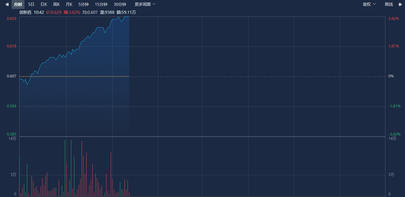 今日早盘,三大指数集体走强,截至发稿,沪指涨超1%,深成指、创业板指均涨超2%,创新药板块持续拉升。中证创新药产业指数截至发稿涨超3.6%,成分股中,昭衍新药涨停,美迪西、百奥泰涨超8%,荣昌生物、迪哲医药-U、迈威生物-U、智飞生物涨超6%。