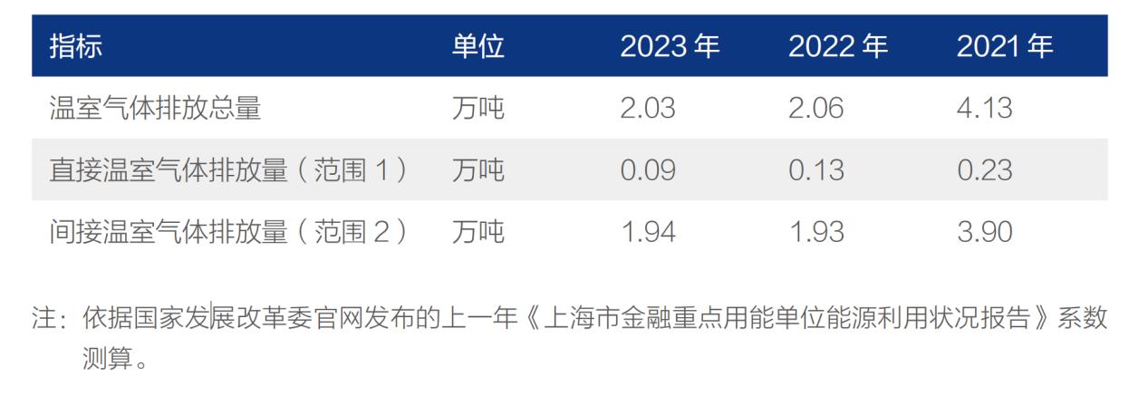 2023年该行温室气体排放总量(含范围1和范围2排放量)为2.03万吨二氧化碳当量,较2022年减少了0.3万吨,同比减少1.46%,温室气体排放总量近三年呈下降趋势。该行直接温室气体排放量(范围 1)连续三年下降,间接温室气体排放量(范围 2)则和2022年相比略有上升。