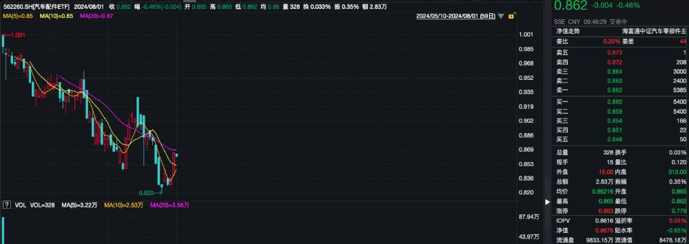 相关ETF中,汽车配件ETF(562260)现跌0.46%,溢折率0.05%,盘中频现溢价交易。截至7月31日,该ETF已连涨两日,累计涨幅超4%。