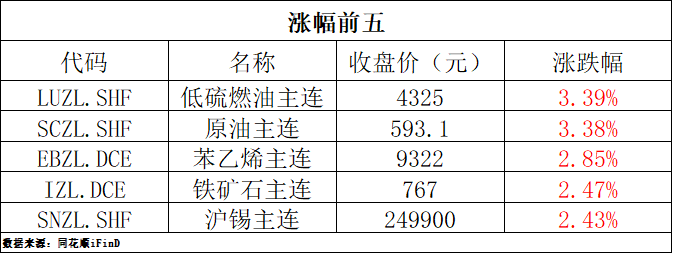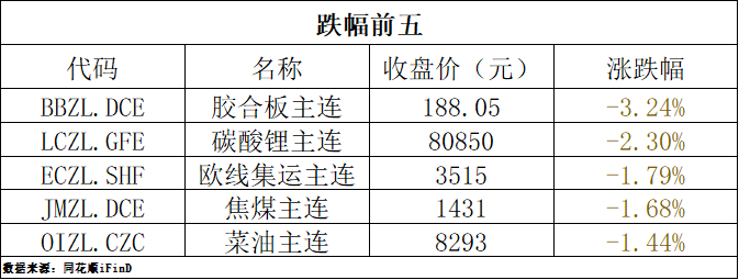 8月1日,国内商品期货多数收涨,低硫燃油、原油涨超3%,苯乙烯、铁矿石、沪锡涨超2%;胶合板跌超3%,碳酸锂跌超2%,欧线集运、焦煤、菜油跌超1%。