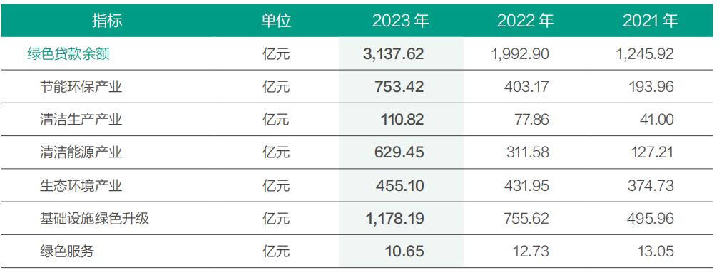 光大银行ESG报告显示,该行近三年绿色贷款余额持续递增,2023年该行绿色贷款余额3137.62亿元,比上年末增长57.44%,2022年绿色贷款余额同比增长也近六成。其中绿色贷款投向基础设施绿色升级领域占比最高,占比超三成;清洁能源产业绿色贷款则增速最快,同比增长约102%,节能环保产业、基础设施绿色升级绿色贷款余额同比分别增长约86.7%,55.9%。