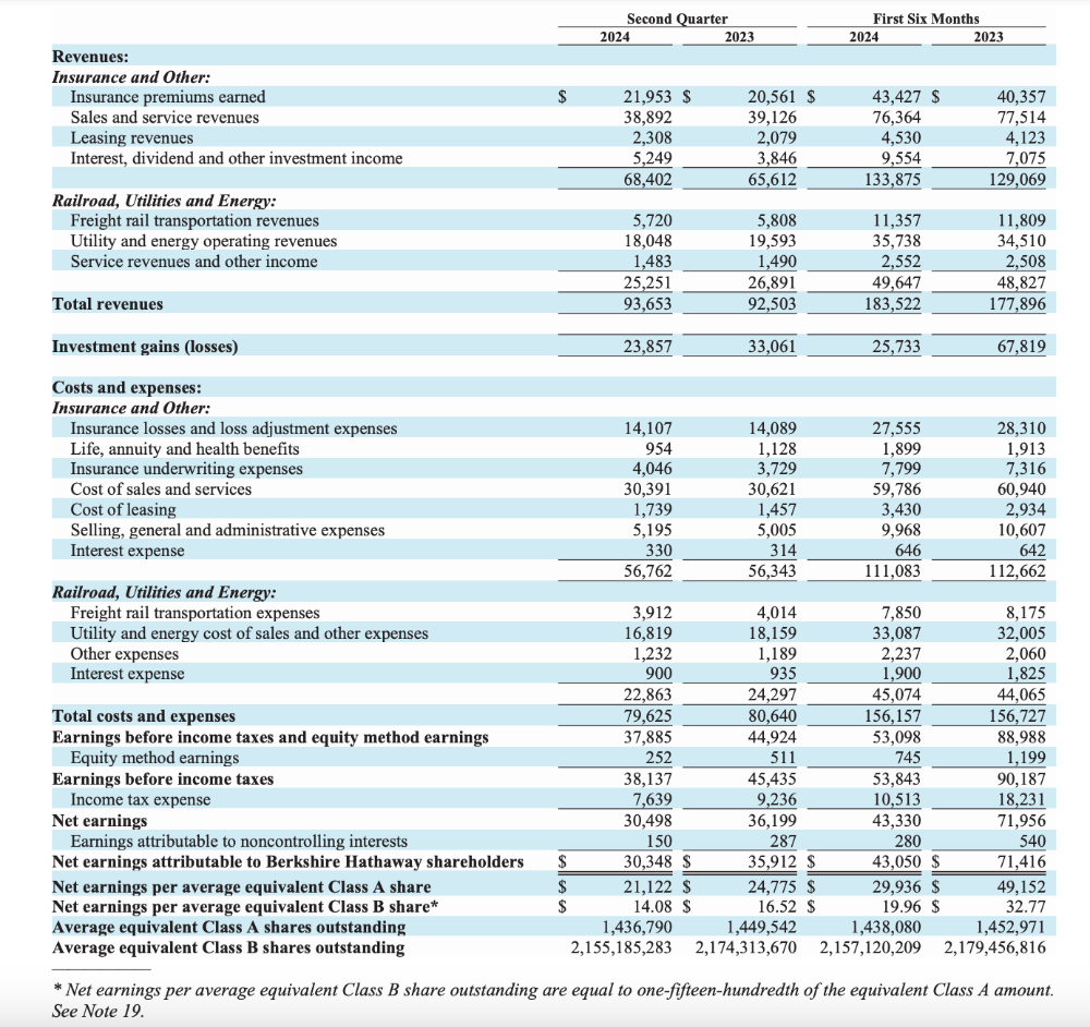 当地时间8月3日,“股神”巴菲特旗下伯克希尔·哈撒韦公布最新业绩,二季度营收为936.53亿美元,略高于上年同期的925.03亿美元,市场预期为910.9亿美元;二季度净利润为303.48亿美元,低于上年同期的359.12亿美元,但远高于市场预期的177.86亿美元。
