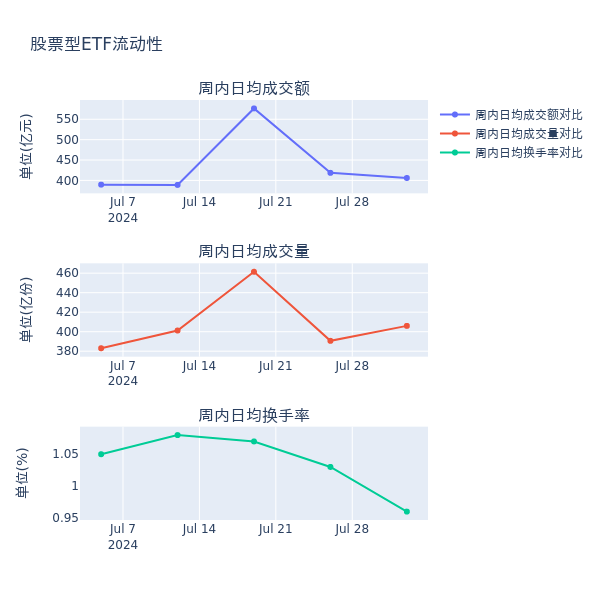 流动性方面,上周股票型ETF市场日均成交额减少3.0%,日均成交量增加3.9%,换手率减少0.07%。