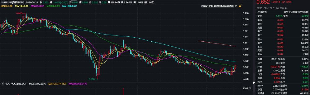 相关ETF方面,创新药ETF(159992)现涨2.19%,成交额超1.1亿,换手率超1.5%,盘中交投活跃。