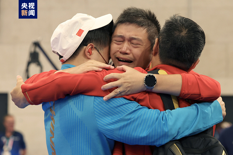 老将李越宏三战奥运终摘金,圆梦“大满贯”,更是实现了中国队在该小项上的金牌零的突破。本场比赛结束后他激动落泪,与教练紧紧拥抱。