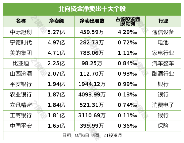 据21投资通智能监测,8月6日,北向资金净卖出62.51亿元,其中沪股通净卖出28.85亿元,深股通净卖出33.65亿元。