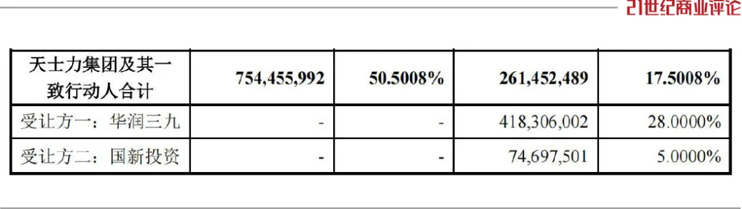 8月4日晚间,天士力公告称,控股股东天士力集团及其一致行动人,拟向华润三九转让所持公司28%股份,并向国新投资转让5%股份。