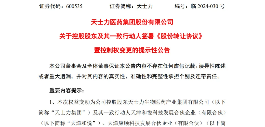 对于控股权转让后,是否会有业务或管理层的变动,天士力方面向记者表示,一切以公告为准。