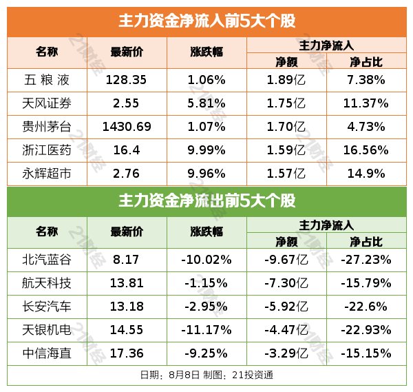 8月8日,市场全天震荡调整,沪指偏强,创业板指盘中再创调整新低。截至收盘,沪指涨0.00%,深成指跌0.04%,创业板指跌0.54%。板块方面,农业、维生素、白酒、ST板块等板块涨幅居前,教育、商业航天、网约车、低空经济等板块跌幅居前。