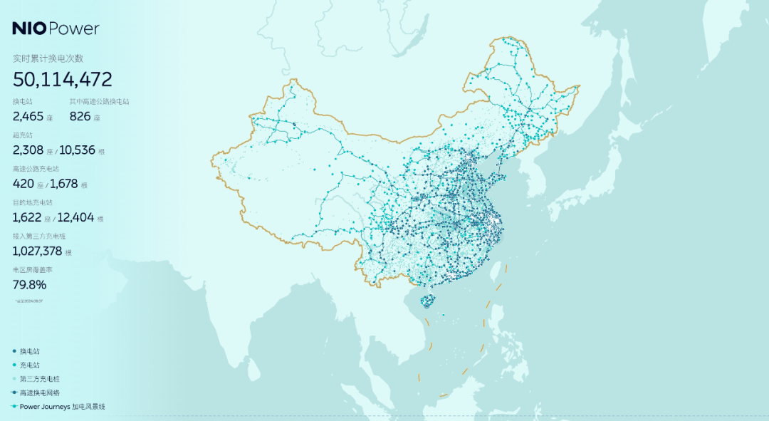 蔚来汽车充换电地图及实时数据,图源蔚来汽车官网