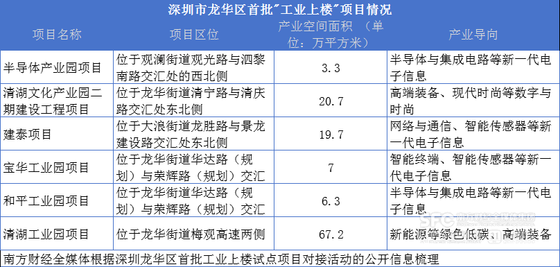 (图:龙华区适用《指引》的工业上楼项目详情)