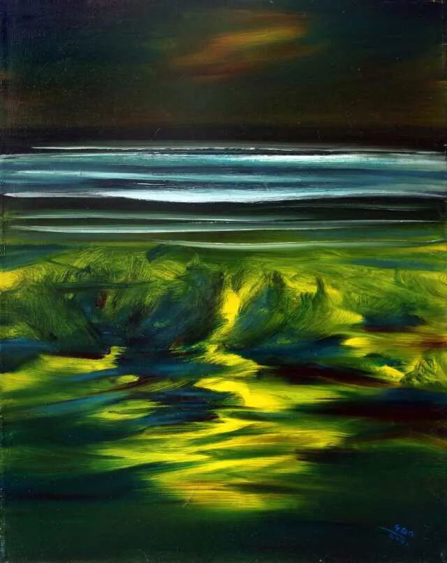 高大钢“前夜——笔触的海”作品是集自然之美、艺术之力与精神之韵于一体的油画杰作。它以深绿色调为主体,通过独特的笔触与色彩运用,展现了大海的壮阔与生命的活力,更在视觉与心灵的双重层面上,引领观者进入了一个充满哲思与情感共鸣的艺术世界。