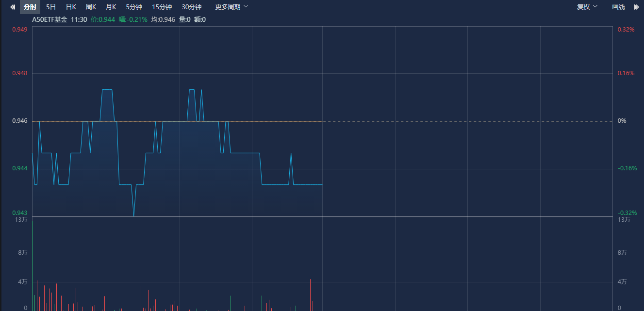 相关ETF方面,A50ETF基金(159592)截至午间收盘下跌0.21%,成交额超8400万元,换手率超2%,早盘交投活跃。溢折率0.08%,早盘频现溢价交易。Wind数据显示,该ETF最新份额为43.48亿份,再创历史新高。