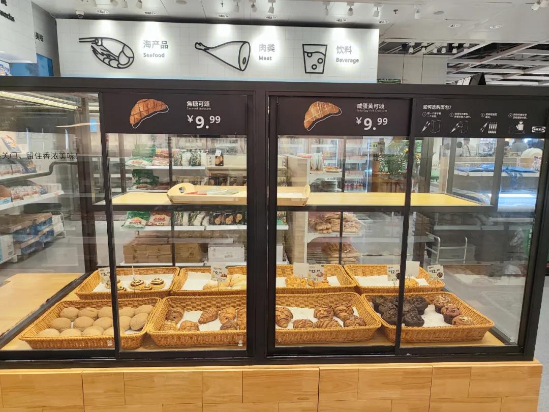 红餐网观察到,在广州部分沃尔玛、盒马、宜家等商超的现烤烘焙区, 都只有一个店员负责烤制烘焙产品 。