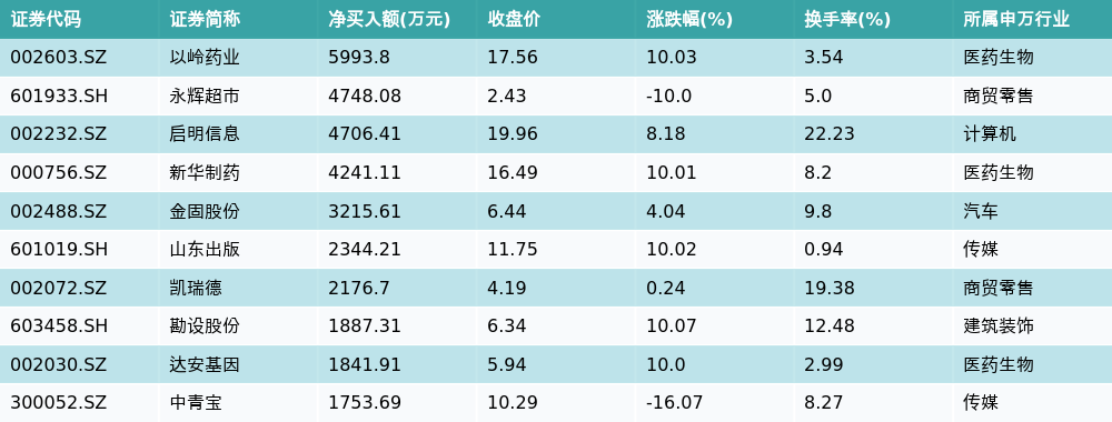 8月12日龙虎榜营业部净买入额前10详情见下表: