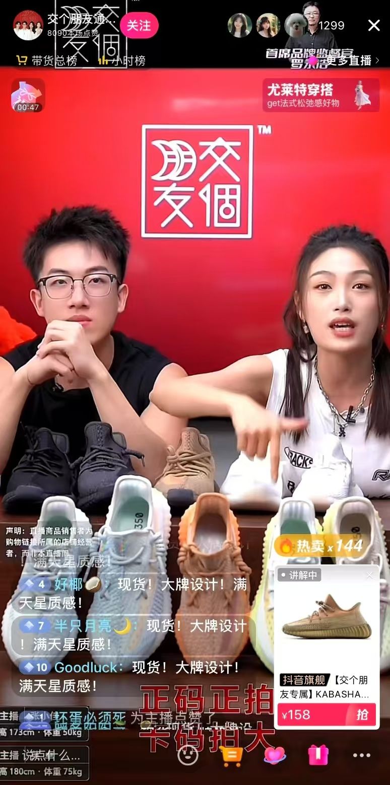 近日有网友发现,“交个朋友”旗下的直播间售卖一款名为KABASHA品牌的椰子鞋,其外观与阿迪达斯官方出品的Yeezy系列相似。