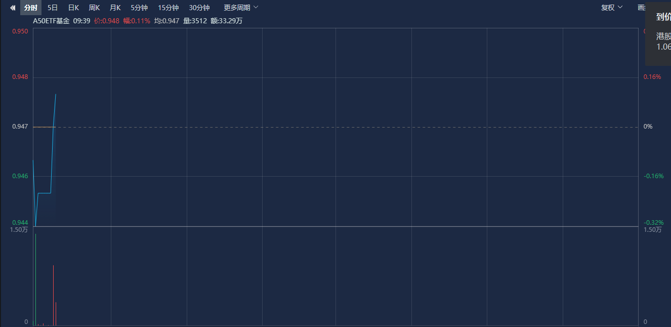 相关ETF方面,A50ETF基金(159592)盘中翻红,截至发稿上涨0.11%。Wind数据显示,该ETF连续11个交易日获资金净流入,累计净流入额超4.33亿元,最新基金份额为44.26亿份,最新流通规模为41.89亿元,均创历史新高。