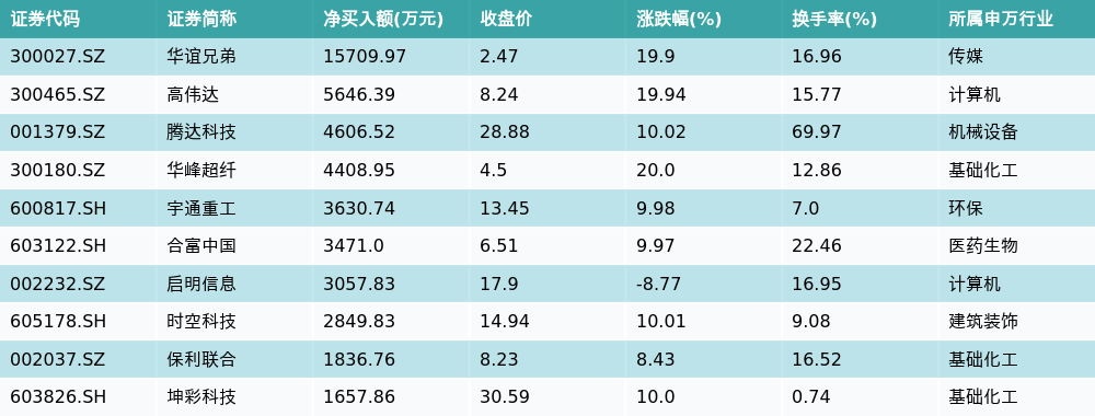8月19日龙虎榜营业部净买入额前10详情见下表: