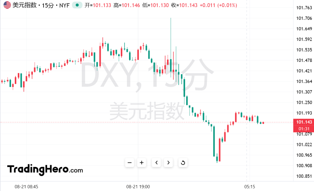 期货市场反映出,在今年剩余时间里,美联储将降息约100个基点。会议纪要公布后,美元指数一度失守101关口,美国10年期国债收益率盘中下跌5.3个基点,至3.765%,创下两周新低。现货黄金获温和买盘短线走高。