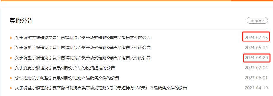 截至发稿日,该产品最新业绩比较基准(202402版)为“25%*中证800指数收益率(000906.SH) +65%*中债-新综合全价(1-3年)指数收益率(CBA00123.CS)+10%*中国人民银行活期存款基准利率”。值得注意的是,这两次业绩比较基准的调整间隔短于该产品180天的最短持有期,不过该产品调整公告也显示,投资者可在事项调整前提交赎回申请。