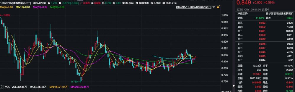 相关ETF中,港股创新药ETF(159567)截至发稿涨0.59%,成交额超1600万元,换手率超10%,早盘交投活跃。Wind数据显示,截至8月27日,该ETF近一个月累计上涨6.32%。