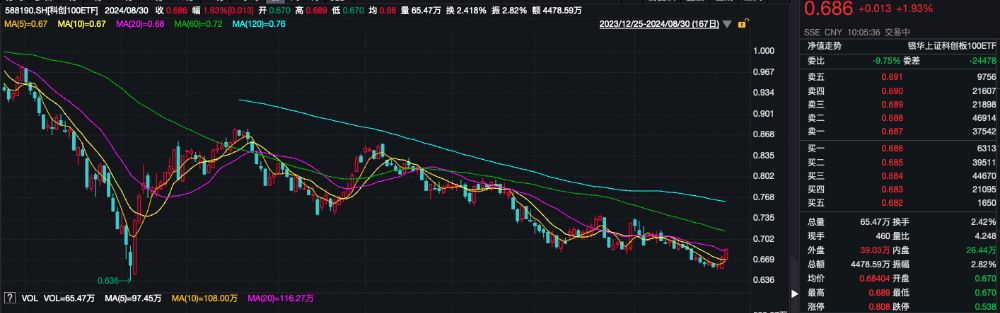 科创100ETF(588190)紧密跟踪科创100指数,该指数是从上海证券交易所科创板中选取市值中等且流动性较好的100只证券作为样本。据Wind数据,截至8月29日,按申万二级行业分类,该指数前三大重仓行业分别为半导体(22.5%)、医疗器械(13.1%)、化学制药(9.6%)。