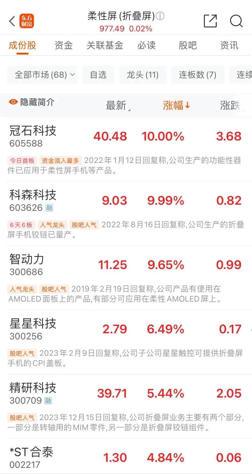 9月2日,A股折叠屏概念延续上周涨势,科森科技6连板,国风新材2连板,智动力一度涨超10%,星星科技等涨幅靠前。