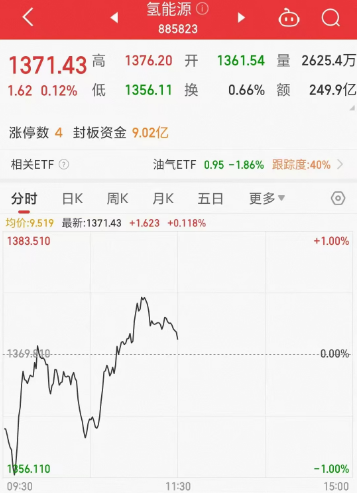 9月4日,氢能源概念逆市拉升,截至早盘收盘,德尔股份(300473.SZ)20CM涨停,致远新能(300985.SZ)、中泰股份(300435.SZ)等涨超5%。