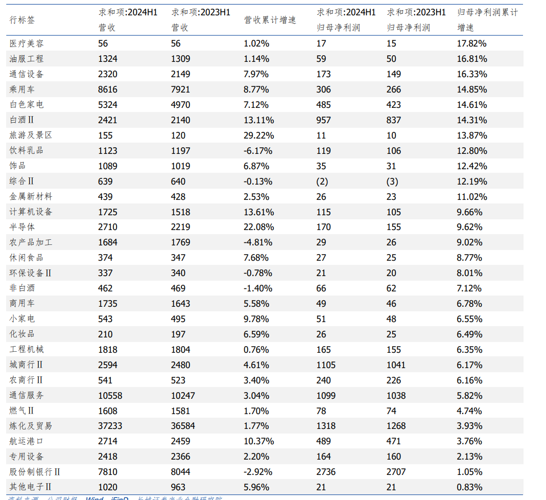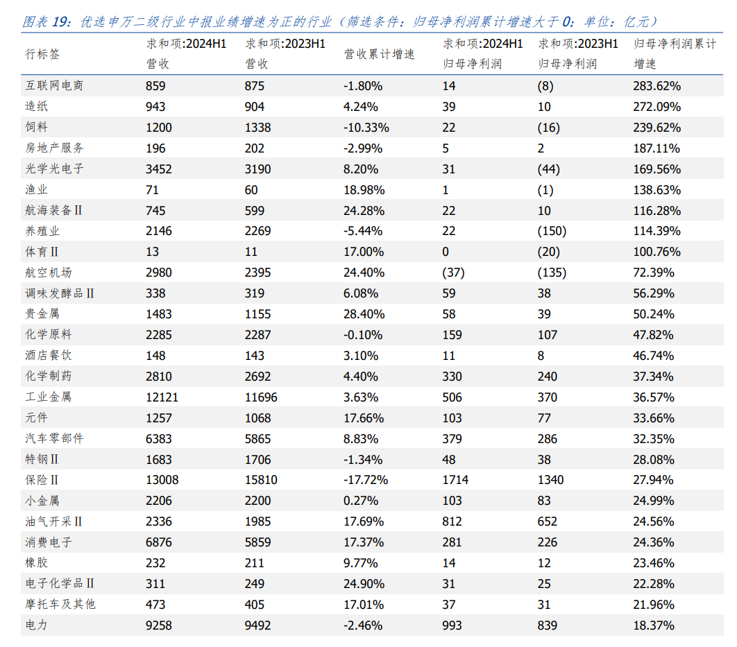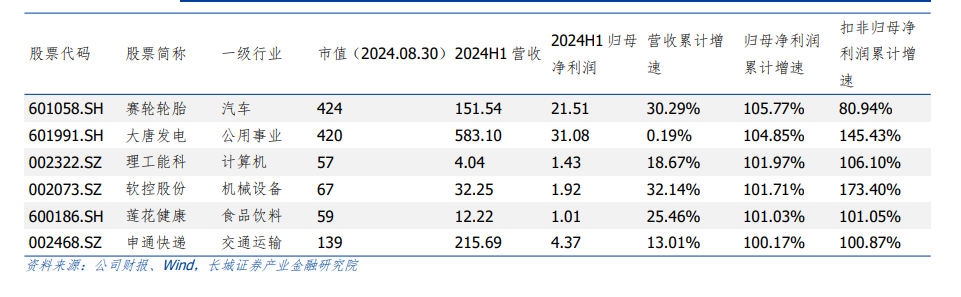 考虑到具备一定盈利规模、业绩增长、且增速同比上升,按照2024年中报归母净利润增速排序,优选部分绩优公司。