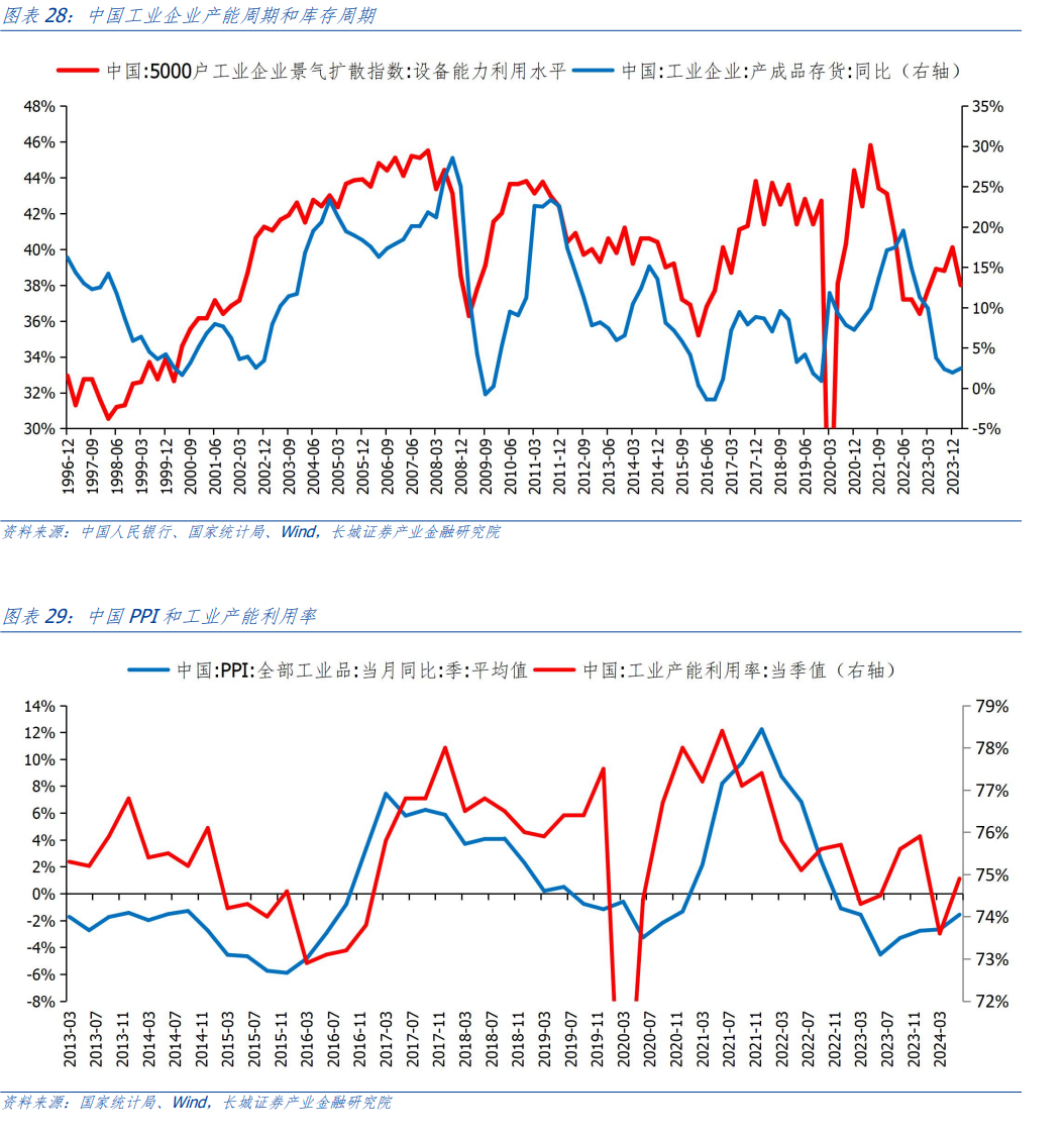 2024年第二季度,有色金属、煤炭营收增速、净利润增速相较一季度有所改善(或存在季节性原因)。对比中报和单第二季度的财务数据,公用事业、石油石化二季度需求增速有所下调,石油石化相较公用事业更为坚韧;有色金属二季度需求和盈利增长有所提升,煤炭的需求和盈利降幅有所放缓。