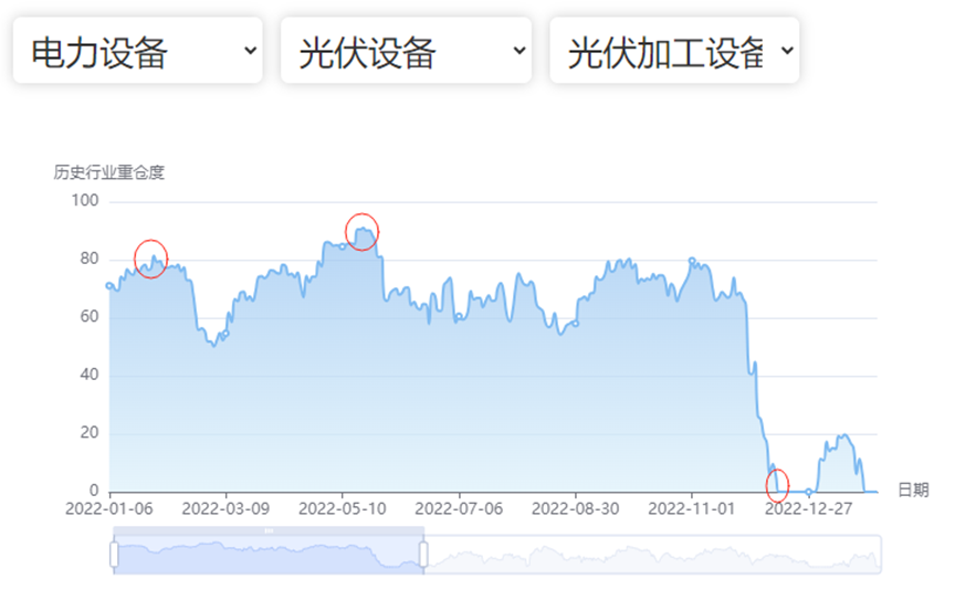 基金第一次超配新能源是在2021年末,招商景气优选对电力设备行业的配置达到了32.15%,但此时新能源板块已经处于大幅回调路上,2022年一季度,重仓股除了宁王之外,均是超30%的跌幅,在这一次失败的调仓里,招商景气优选A净值跌16.49%,付经理紧急避险至消费股,净值方才短暂企稳。2022年二季度,不信邪的付斌再次押注新能源,重仓通威股份、晶科能源、晶澳科技等光伏股,结果在三季度惨遭暴击,光伏行业指数大跌15.47%,这一季度,招商景气优选A净值跌11.57%,单位净值直逼0.6元。