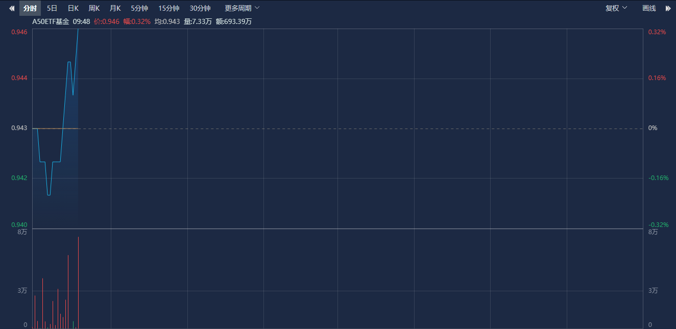 A50ETF基金(159592)紧密跟踪中证A50指数,该指数布局A股核心资产,从各行业龙头上市公司证券中,选取市值最大的50只证券作为指数样本,以反映各行业最具代表性的龙头上市公司证券的整体表现。