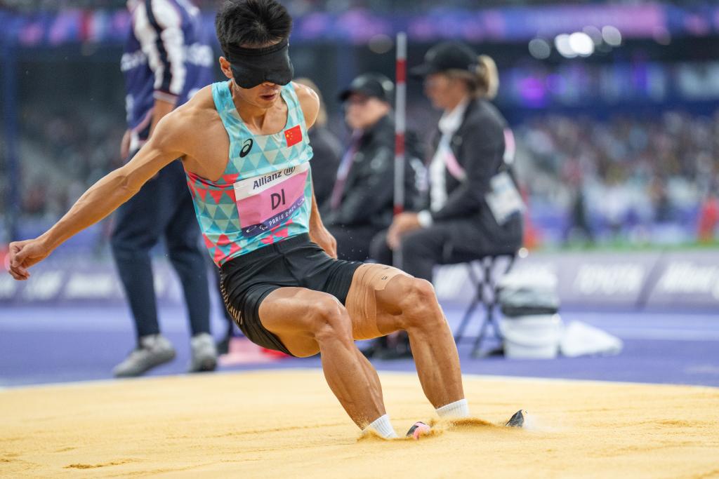 8月30日,邸东东在巴黎残奥会田径男子跳远T11级决赛中试跳。新华社记者 黄伟 摄