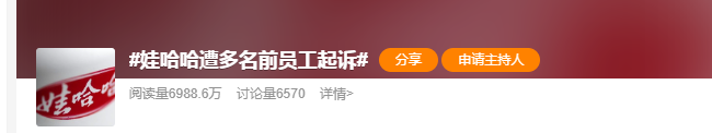此前,#娃哈哈遭多名前员工起诉#相关话题登上微博热搜第一位,引起网友广泛关注。