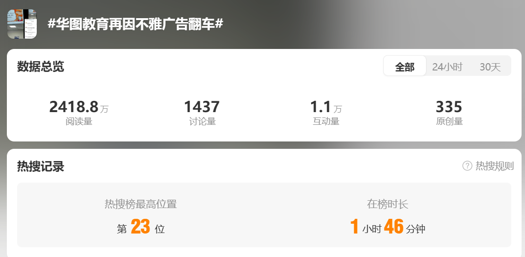 9月13日,#华图教育再因不雅广告翻车#登上热搜。