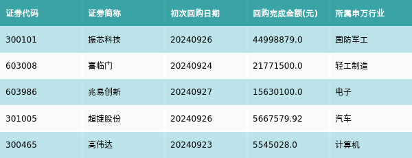 上周共有26条开始执行回购公告,其中执行金额最多的5条公告为:
