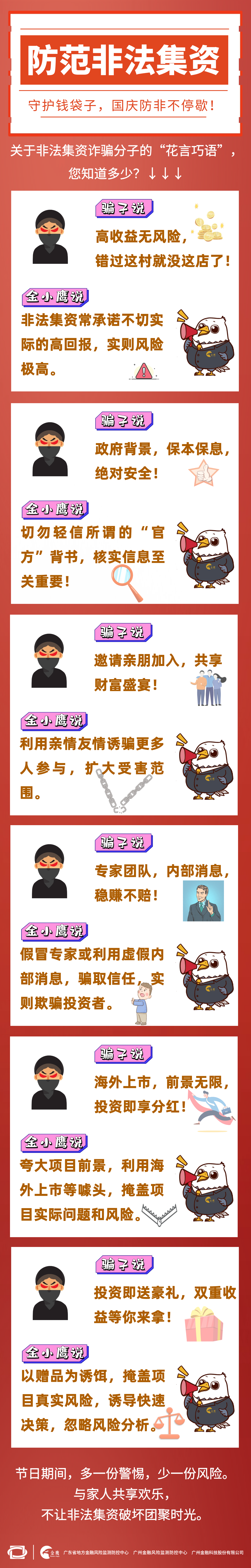 守护钱袋子,国庆防非不停歇!关于非法集资诈骗分子的“花言巧语”, 您知道多少?
