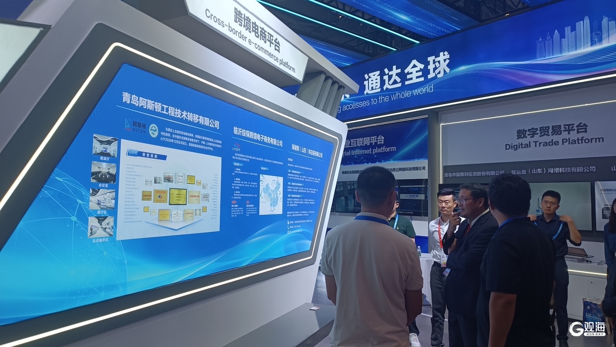 本届数贸会以“数字贸易 商通全球”为主题,吸引来自国内外的1546家企业线下参展,3万余名专业客商采购洽谈,累计入场观众超过20万人次。本届展会上,青岛市商务局组织标贝科技、中瑞数科、檬豆科技等9家数字贸易企业,参加山东省设置的“数字山东 通达全球”专题展区,占山东参展企业比重约50%,集中展示青岛数字智能、跨境电商、数字贸易、工业互联网等领域数字贸易发展最新成果,吸引300余家客商对接洽谈。