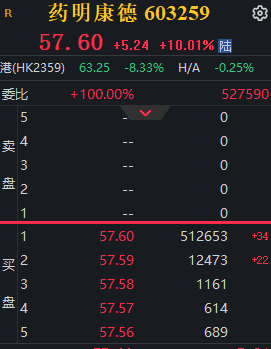 10月8日药明康德A股开盘即一字涨停,截至10点02分,药明康德H股跌超8%。
