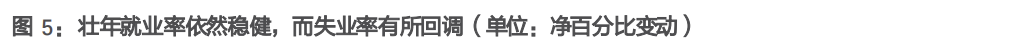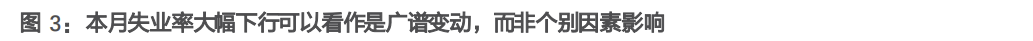 各主要失业原因类别基本都录得人数的减少,因此本月失业率下行可以看作是广谱变动,而非受到个别类目的影响。