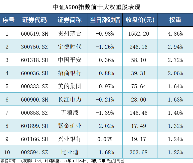 中证A500指数权重股表现
